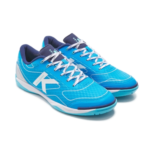 Zapatillas de fútbol azul Una zapatilla pensada para aquellos jugadores amateurs que buscan cualquier momento para disfrutar de un partido de futsal con sus amigos. Este zapato tiene un corte sin costuras que utiliza la tecnología Estrobel basada en relieves para prevenir lesiones proporcionando la máxima seguridad en los cambios de dirección y frenado. La suela cuenta con las tecnologías Ultra-Grip y Non-Marking que, junto con el talón reforzado, proporcionan seguridad y estabilidad al jugador, ayudándolo a mejorar su técnica.