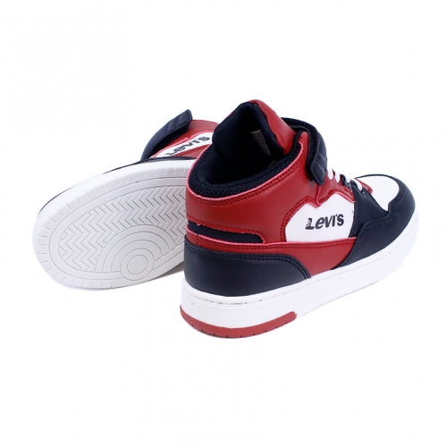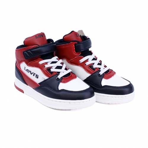 Bota casual niño marca Levis en tonos negro, granate y blanco  con velcro y cordones.