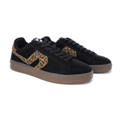 Deportivo serraje negro con banda estampada de Leopardo: Estilo Casual y Urbano, ideal para un estilo casual y urbano, combinando comodidad y un diseño audaz que marca la diferencia.
