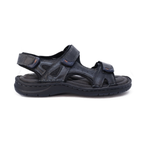 Sandalia hombre con tres cierres adherentes que garantizan un ajuste perfecto. Realizado en suave piel vegana y con la planta de microfibra acolchada.
