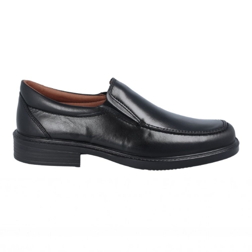 Zapato mocasín para hombre en piel de cordero de color negro. Forro interior de piel. Piso ligero con 'shock absorber' para amortiguar la pisada.