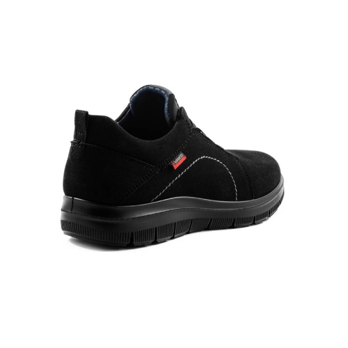 Zapato cerrado, hecho en materia vegano, suela de goma ligera, con plantilla extraíble, absorbente y anti-bacterias. El ajuste de este calzado es mediante cordones elásticos en su empeine. Tiene tecnología waterproof (impermeable) y membrana ecológica interna biodegradable.