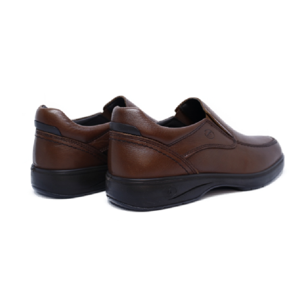 Mocasín de hombre que se ajusta mediante elásticos laterales. Fabricado en piel napa color coñac.