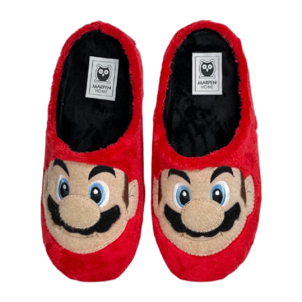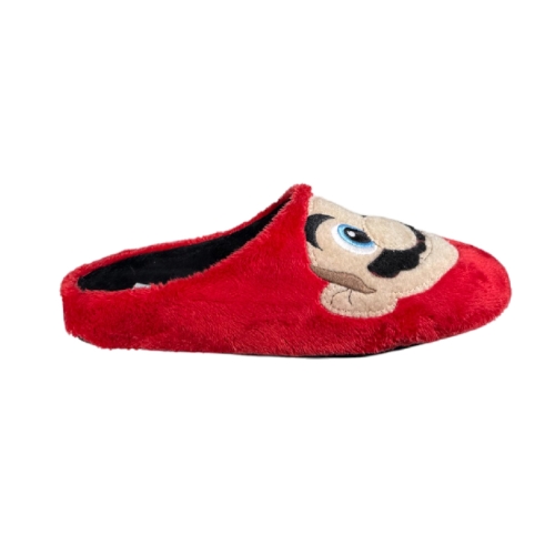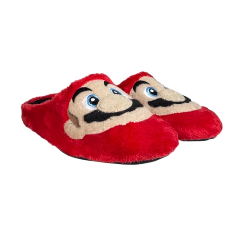 Zapatilla descubierta   realizada en tejido suapel efecto peluche en color rojo con la cara de Super Mario Bross. La planta está conformada por espuma de primera calidad forrada en fieltro antibacteriano, con resistencia y duración máxima.