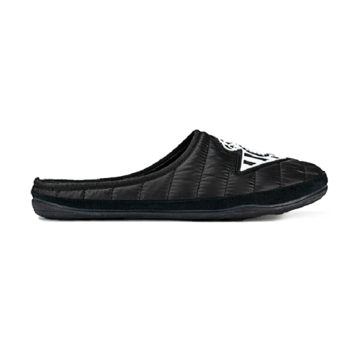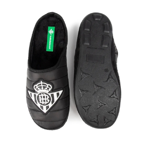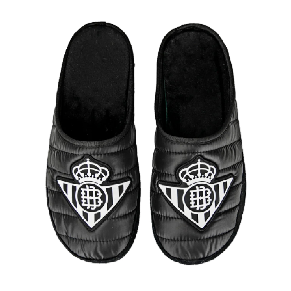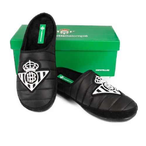 Nuestro modelo más deportivo es esta zapatilla en tejido amatista, diseñada en negro con un gran logo del club. Una combinación ganadora para estas zapatillas que no podrás quitarte.