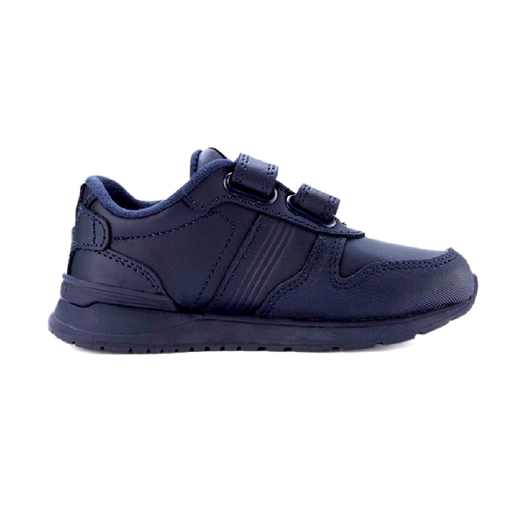 Deportivas azules pensadas para resistir la jornada escolar y toda clase de actividades. Realizadas en piel en su exterior y en microfibra antibacteriana en su exterior. Suela de caucho antideslizante resistente al desgaste. Cierre con buen ajuste gracias al doble velcro.