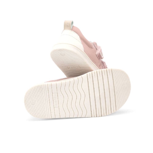 Zapatillas deportivas para niño, de gran versatilidad para sus aventuras diarias. Material exterior efecto piel. Suela de caucho ligera y flexible. Cierre regulable con doble velcro para una puesta rápida y un mejor ajuste. Se trata de un artículo de diseño unisex de gran versatilidad por la neutralidad de sus tonos y su forma. Modelo perteneciente a nuestra línea Barefoot, con suela plana (zero drop) antideslizante y horma redonda, sin refuerzos ni piezas metálicas. Es ligero, ancho y respetuoso con el pie de los más pequeños. Además, su plantilla es antibacteriana y transpirable.