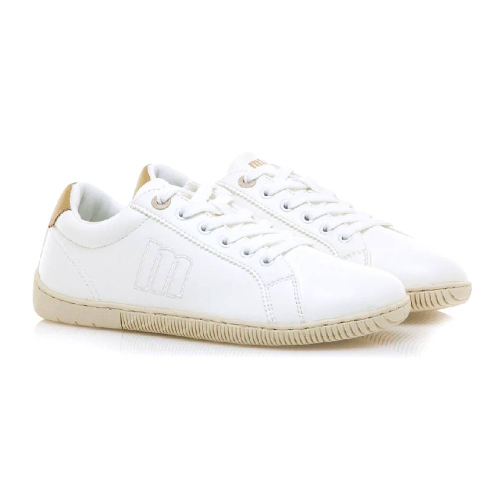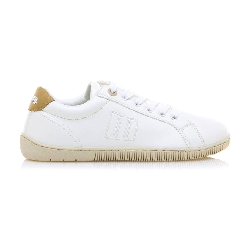 Zapatillas blancas modelo Free Aria para mujer, de Mustang. Con un diseño sencillo y un detalle de color beige en la parte del talón. Se trata de un calzado minimalista que gracias a su puntera ancha, suela totalmente plana (cero drop) y flexibilidad, mejora la anatomía del pie y favorece una mejor posición del mismo. Se vende con una plantilla de transición para hacer el cambio de calzado convencional a minimalista de manera progresiva. Con certificado VEGANO sellado por INESCOP, el cual garantiza que la naturaleza química principal del material no se corresponde con fibras de origen animal. ¡Descubre Free Aria de Mustang!