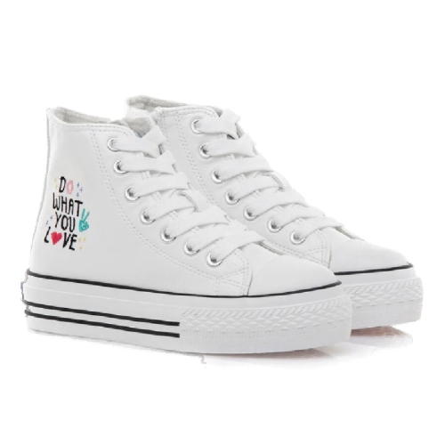 Zapatilla abotinada Bigger Mustang para niña. Diseñada en color blanco con cierre de cordones al tono, destaca gracias a su diseño de texto bordado en el lateral. Incluye cierre de cremallera interior en el lateral de la zapatilla. Logo de la marca en la lengüeta. Le encantará combinarlas en todos sus outfits. Con certificado VEGANO sellado por INESCOP, el cual garantiza que la naturaleza química principal del material no se corresponde con fibras de origen animal