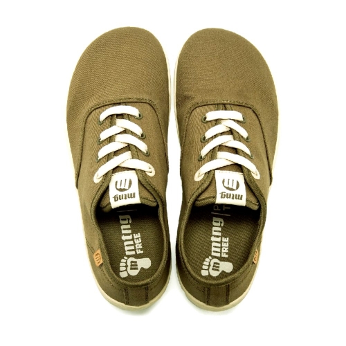 Zapatillas marrones FREE Aria de Mtng para mujer. Con un diseño minimalista y versátil, fácil de combinar. Fabricadas con un 60% de algodón reciclado post consumo y un 40% de algodón convencional. Diseñadas y desarrolladas especialmente en colaboración con el Dr. Juanjo López, traumatólogo deportivo, para respetar el desarrollo natural del pie. Se trata de un calzado minimalista que gracias a su puntera ancha, suela totalmente plana (cero drop) y flexibilidad, mejora la anatomía del pie y favorece una mejor posición del mismo. Se vende con una plantilla de transición para hacer el cambio de calzado convencional a minimalista de manera progresiva. Con certificado VEGANO sellado por INESCOP, el cual garantiza que la naturaleza química principal del material no se corresponde con fibras de origen animal. ¡Descubre FREE A