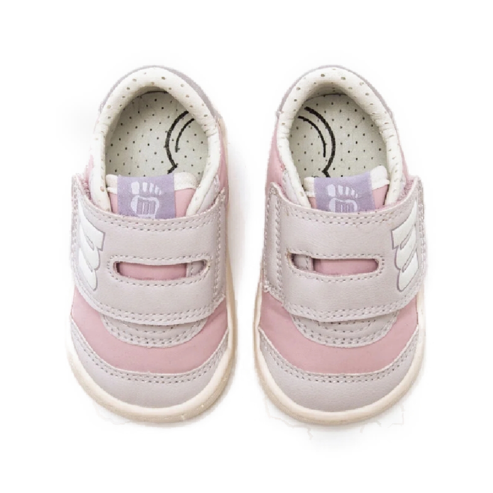 Zapatillas barefoot de color rosa para niña, modelo Free Baby de la marca Mustang. Su doble cierre adhesivo facilita el calce autónomo, mientras que la combinación de tonos malva y rosa suave le aporta un aire delicado. Diseñada y desarrollada especialmente en colaboración con el Dr. Juanjo López, traumatólogo deportivo e infantil, para respetar el desarrollo natural del pie de los niños. Gracias a su puntera ancha permite el libre movimiento de los dedos dentro del zapato. Su suela tiene 3 mm de grosor y con zero drop (totalmente plana) respeta el natural desarrollo del pie del pequeño y sus elementos flexibles y torsionables hace que el pie del niño no esté encorsetado por la estructura del zapato. Las plantillas extraíbles facilitan comprobar si la talla del calzado es la correcta para tu hijo. Además, su fácil apertura facilita que el niño pueda descalzarse y calzarse de forma autónoma. Acompaña los primeros pasos de tu bebé con Mustang. Con certificado VEGANO sellado por INESCOP, el cual garantiza que la naturaleza química principal del material no se corresponde con fibras de origen animal.
