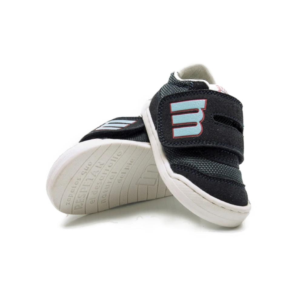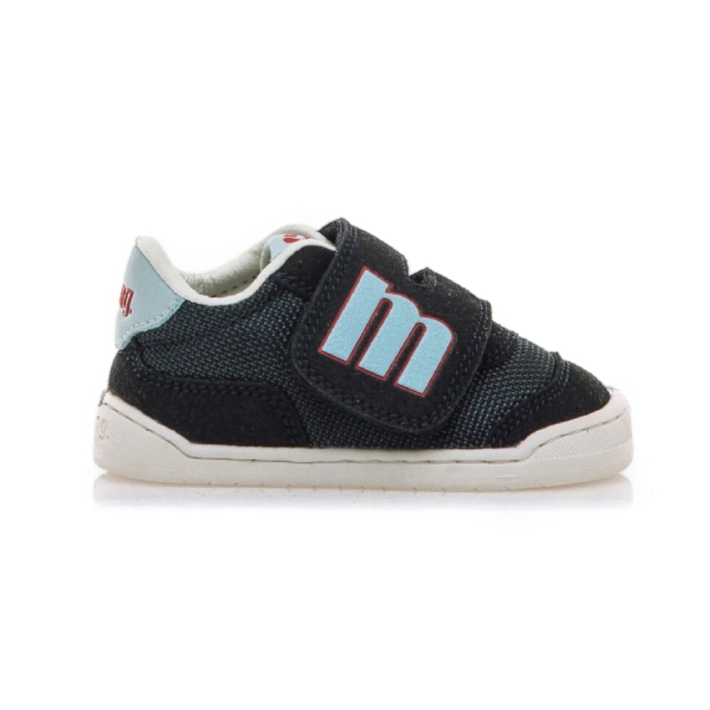 Zapatilla de color azul marino para bebé de la marca Mustang, modelo Free Baby. Combina paneles de tejido tramado con refuerzos texturizados, creando un diseño visualmente atractivo y resistente. El doble cierre adhesivo con la “m” en azul claro aporta un toque divertido y funcional, mientras que el talón en contraste celeste con logo en rojo refuerza su estilo urbano. Diseñada y desarrollada especialmente en colaboración con el Dr. Juanjo López, traumatólogo deportivo e infantil, para respetar el desarrollo natural del pie de los niños. Gracias a su puntera ancha permite el libre movimiento de los dedos dentro del zapato. Su suela tiene 3 mm de grosor y con zero drop (totalmente plana) respeta el natural desarrollo del pie del pequeño y sus elementos flexibles y torsionables hace que el pie del niño no esté encorsetado por la estructura del zapato. Las plantillas extraíbles facilitan comprobar si la talla del calzado es la correcta para tu hijo. Además, su fácil apertura facilita que el niño pueda descalzarse y calzarse de forma autónoma. Acompaña los primeros pasos de tu bebé con Mustang. Con certificado VEGANO sellado por INESCOP, el cual garantiza que la naturaleza química principal del material no se corresponde con fibras de origen animal.