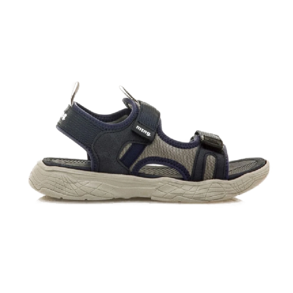 Sandalia gris y azul marino Treck para niño de Mustang, con tiras ajustables y tejido traspirable. Este modelo cuenta con cierres adherentes y destaca por su combinación de colores y su gruesa suela en tono grisaceo. ¡Disfruta tu verano con Treck de Mustang!