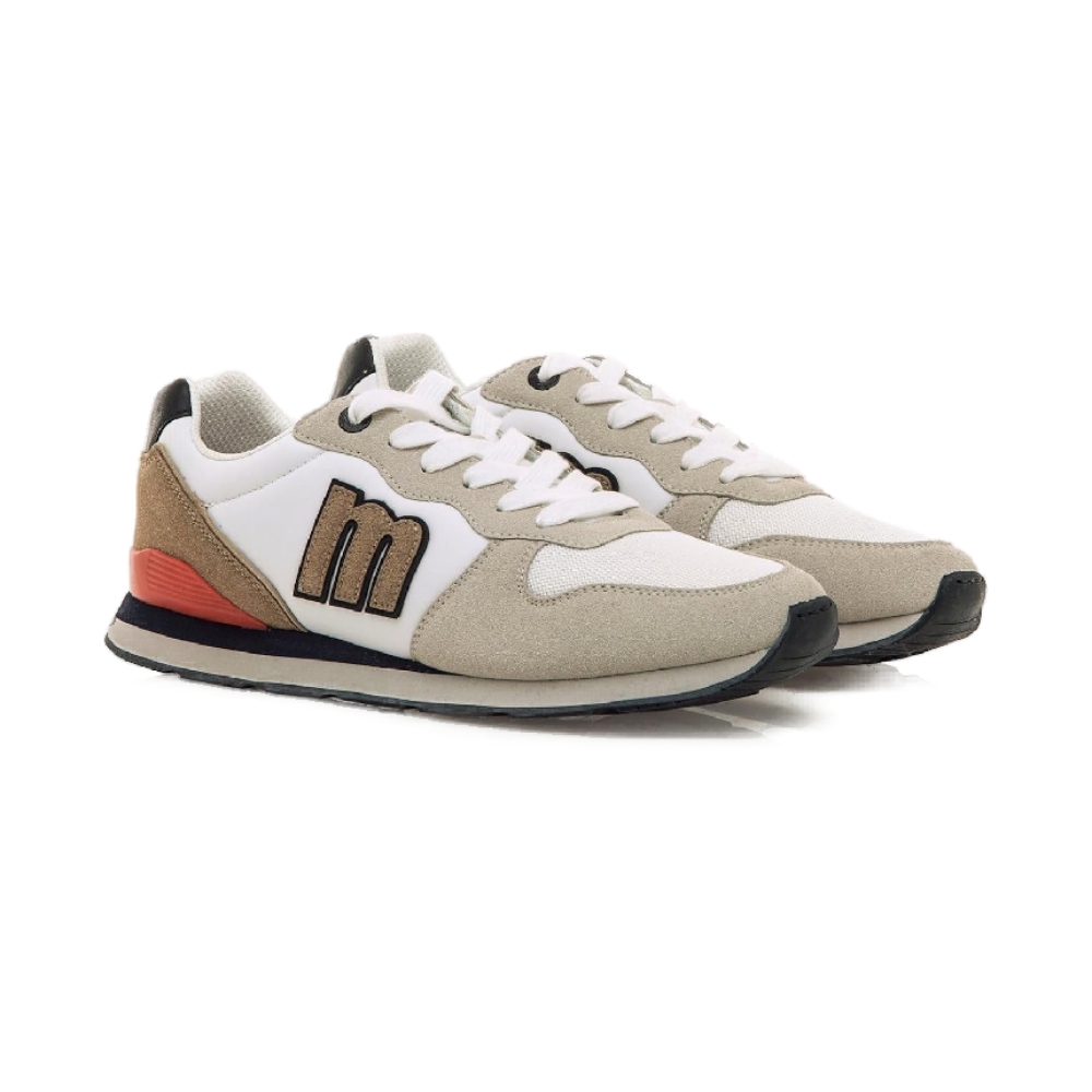Zapatillas de hombre de la marca Mtng, modelo Joggo Classic de color blanco con detalles beige y rojo, diseño casual con inspiración deportiva. Este deportivo combina paneles de texturas suaves y el logotipo lateral en relieve, aportando un toque moderno. Su suela ligera y antideslizante garantiza comodidad y estabilidad, siendo una opción perfecta para el uso diario o para completar looks relajados con un toque dinámico. Incorporan una plantilla de 4 mm con tecnología Starfit, estas zapatillas ofrecen una pisada suave y cómoda. Su espuma Comfort Foam aporta un acolchado extra, ideal para disfrutar de un confort prolongado en cada uso. Con certificado VEGANO sellado por INESCOP, el cual garantiza que la naturaleza química principal del material no se corresponde con fibras de origen animal.