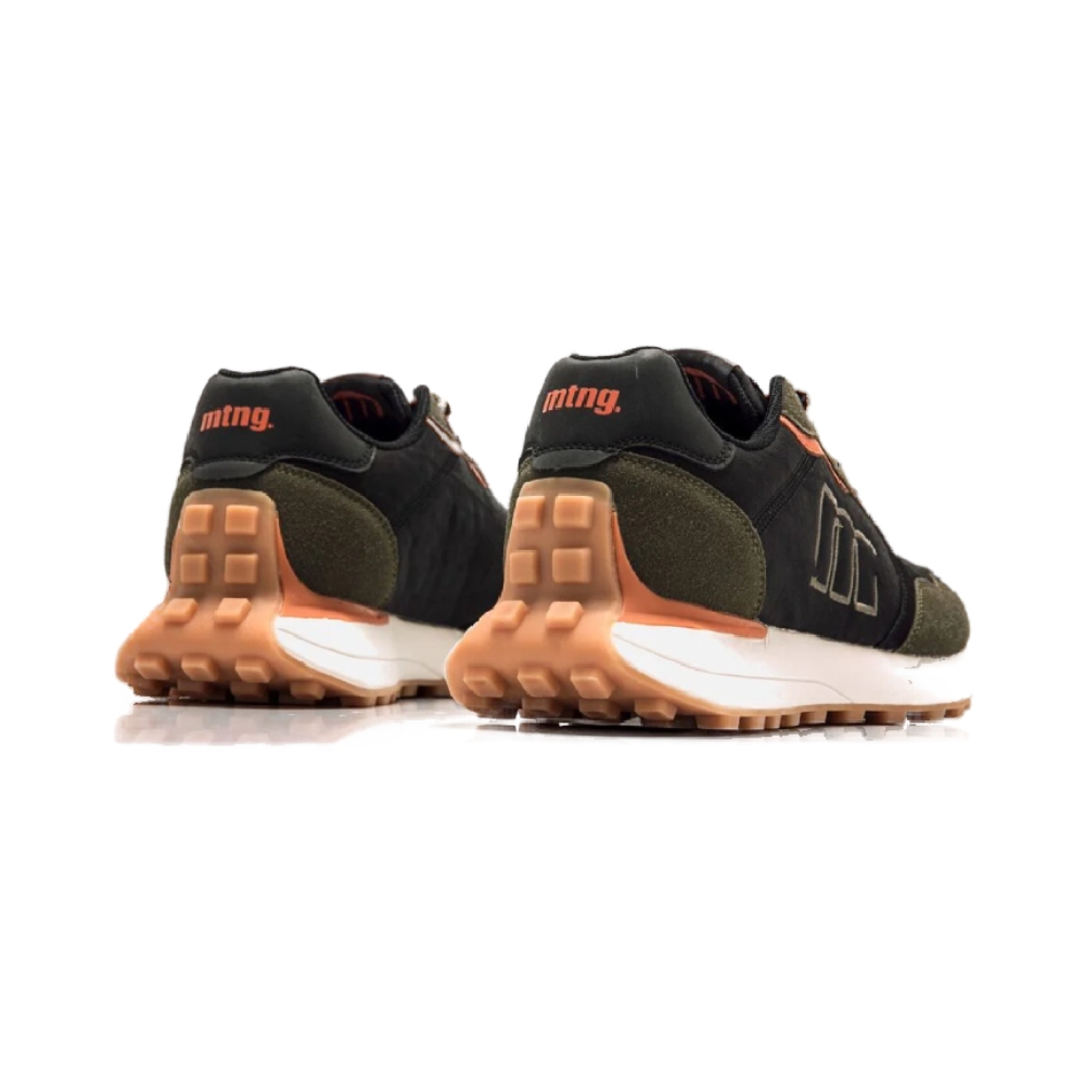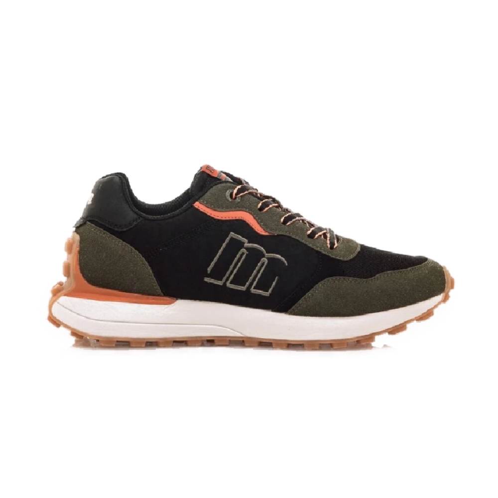 Zapatillas de hombre, modelo Zinc Mustang de color negro con detalles en verde y naranja. Su diseño combina un estilo moderno con una suela dentada que ofrece un excelente agarre en diferentes superficies, ideal para un look casual y funcional. Incorporan una plantilla extraíble con tecnología Starfit y diseño termoconformado, que se adapta perfectamente al contorno del pie para ofrecer un soporte óptimo. Gracias a la espuma Comfort Foam, garantizan una amortiguación excepcional y comodidad durante todo el día.