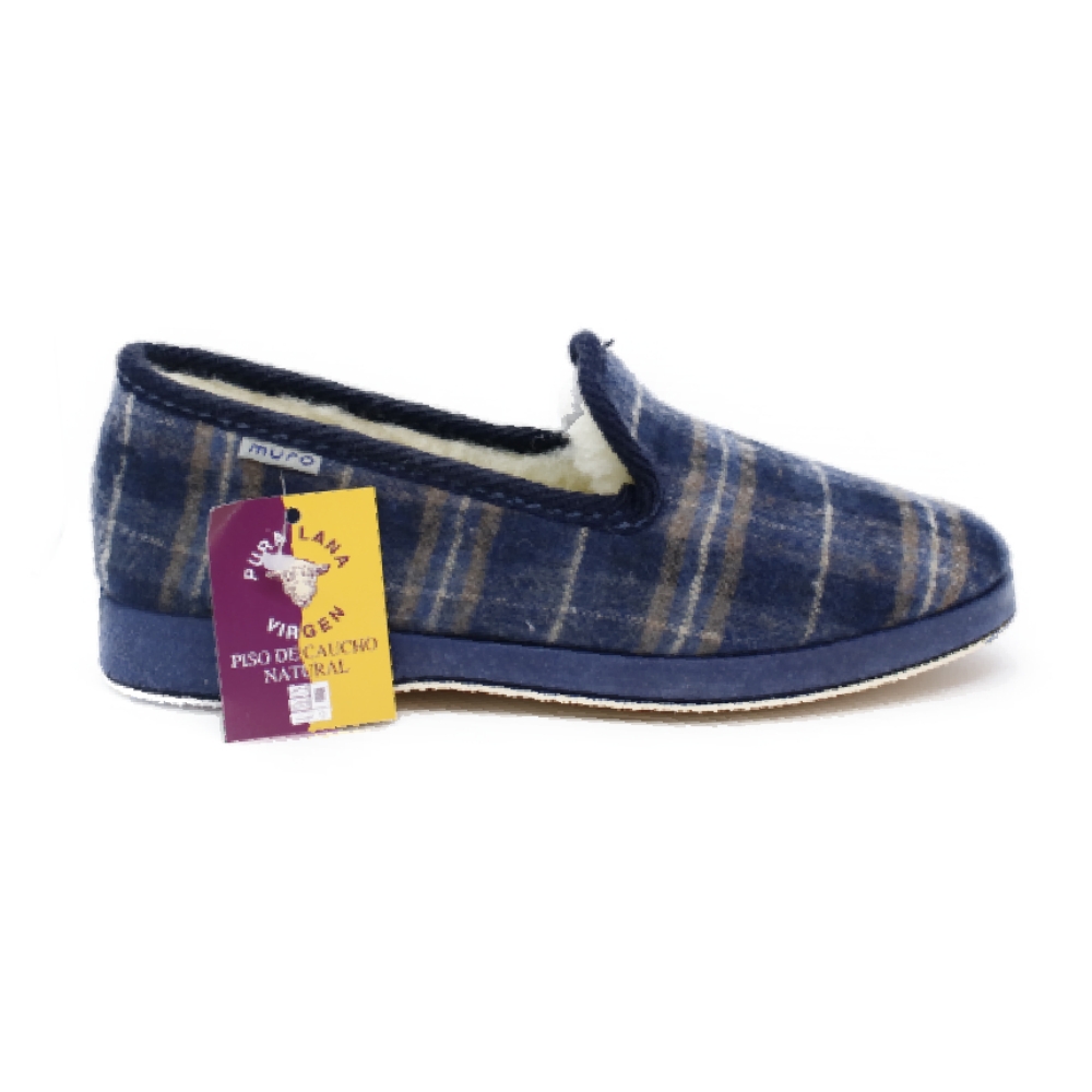 Zapatilla de casa para niño y hombre realizado en paño y forrado en su interior con lana natural. Piso de goma silencioso y antideslizante. Una zapatilla confortable y calentita para todas las edades.