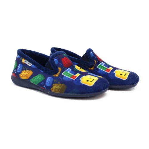 Zapatilla de copete para niños. Viene fabricada en bamara suave y calentito con dibujos de LEGO.. Suela de caucho antideslizante y totalmente flexible. Apto para lavadora.