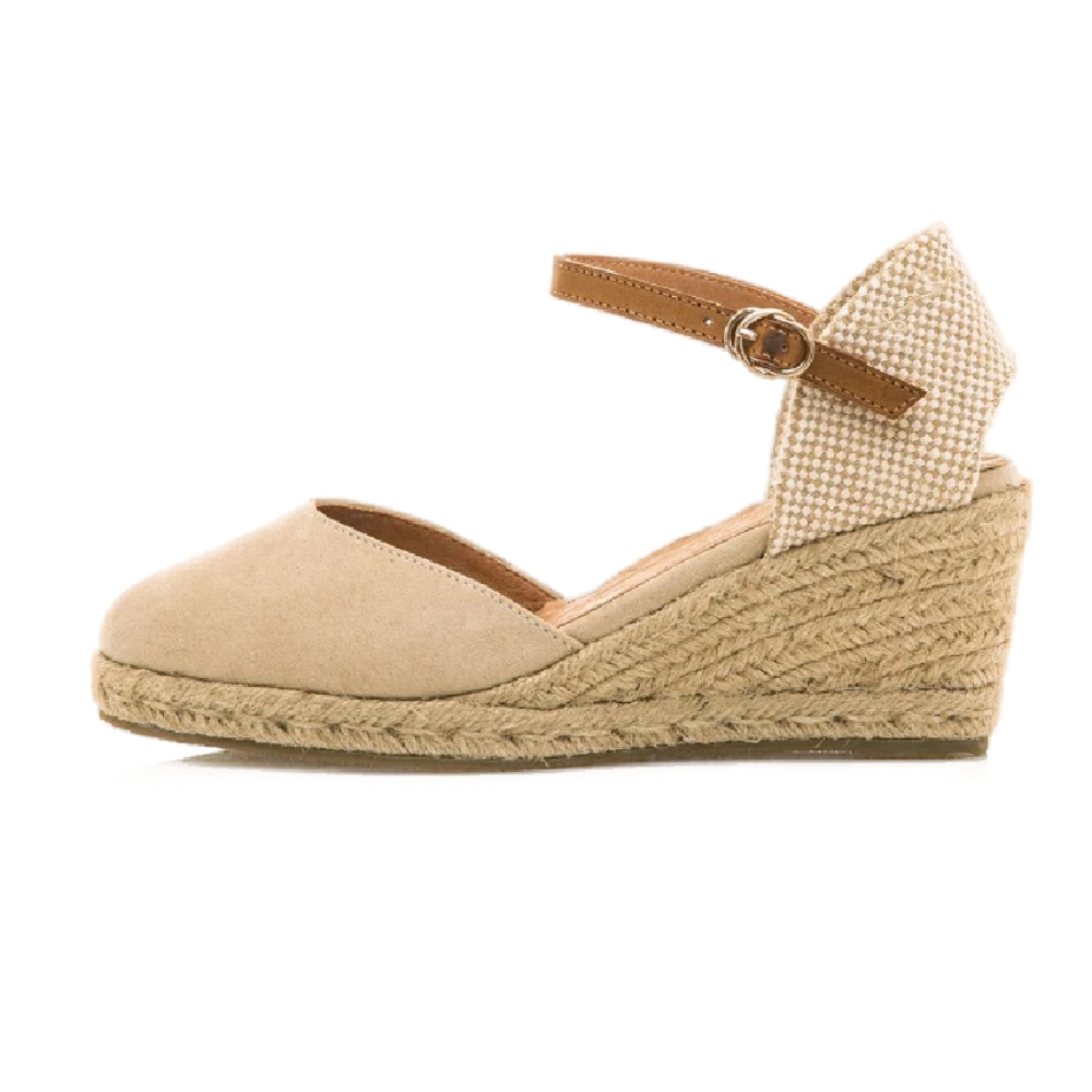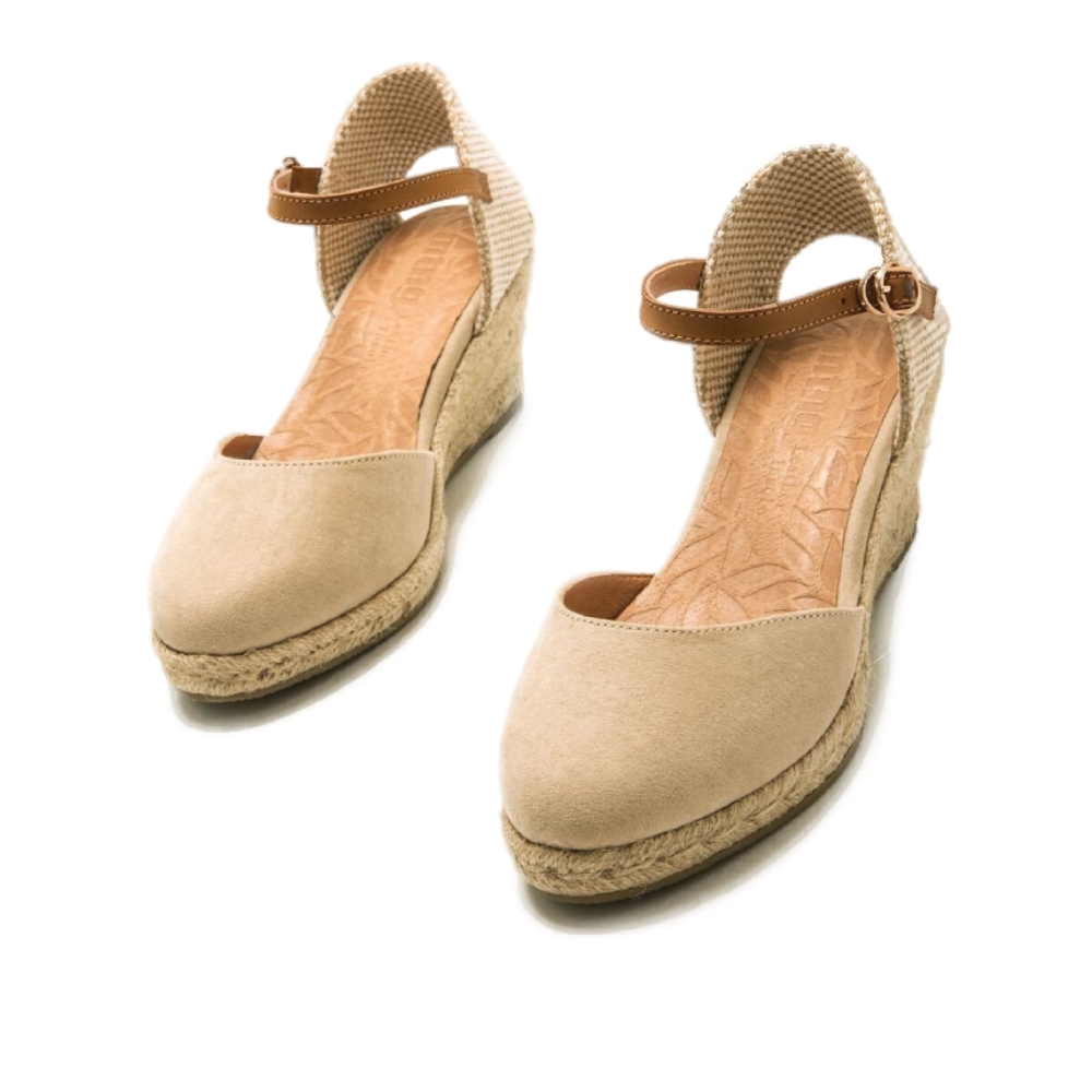 Sandalia Austen Mustang para chica, fabricada en color arena con una cómoda plantilla de piel. Cuenta con un original diseño trenzado de yute a lo largo de la cuña. Puntera cerrada y talón abierto. Pulsera en el tobillo con cierre de hebilla para mayor sujeción del pie. Unas Mustang ideales para combinar este verano.