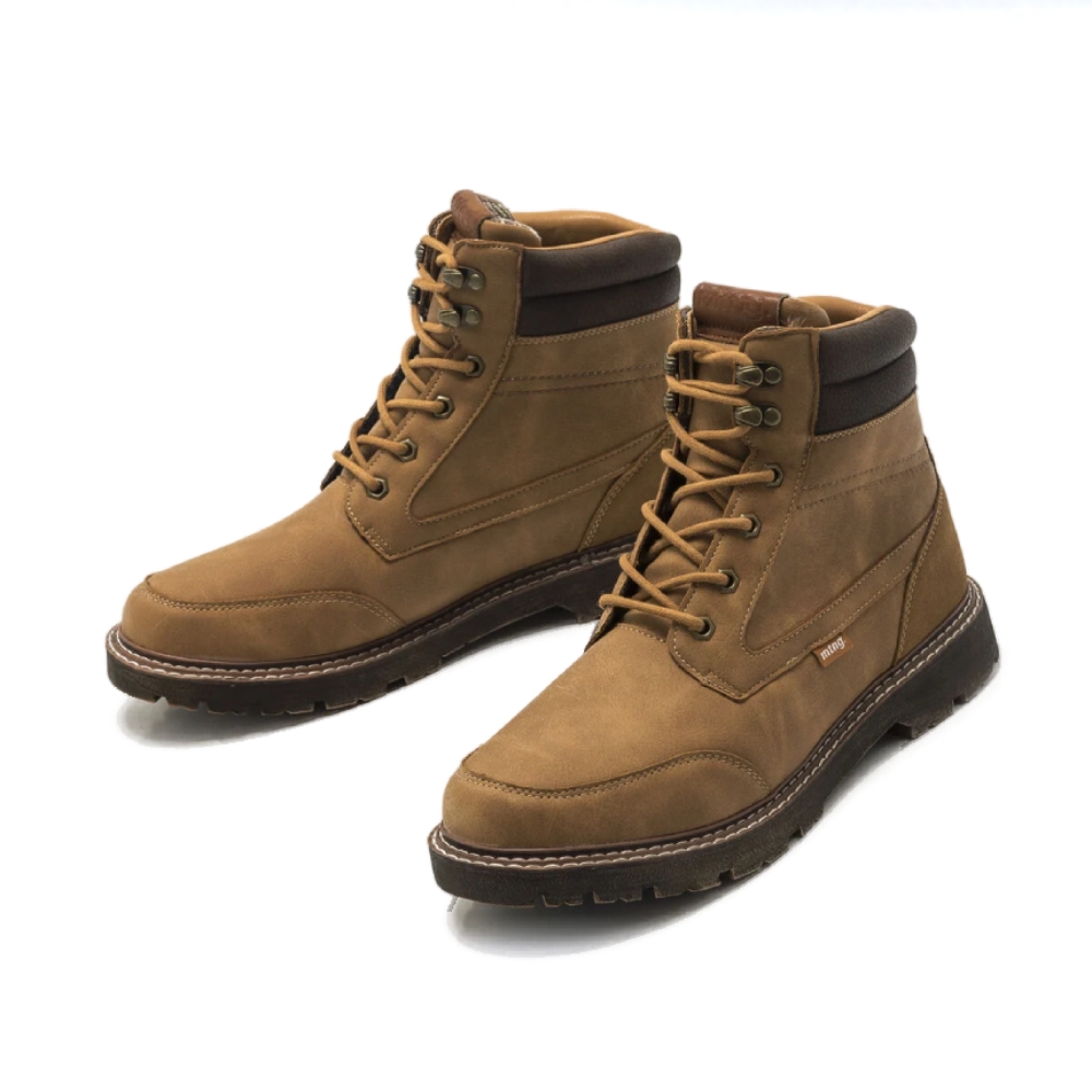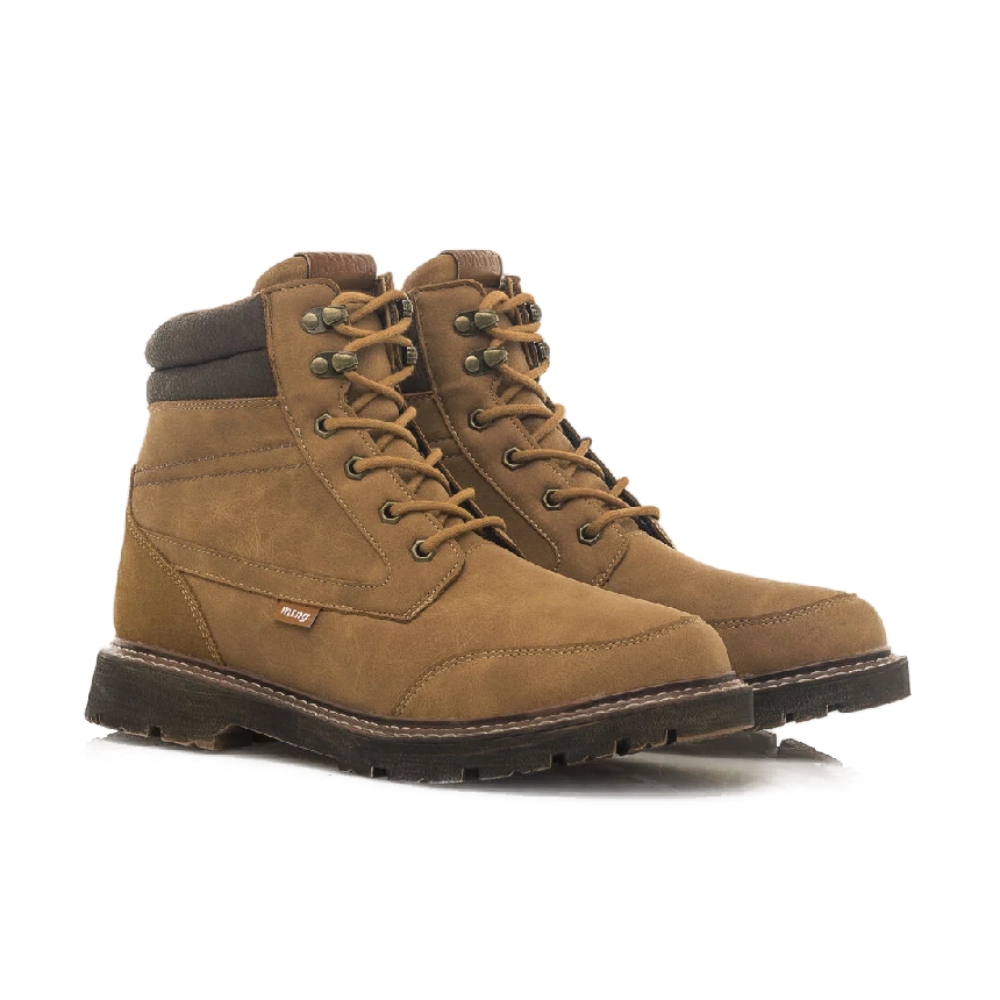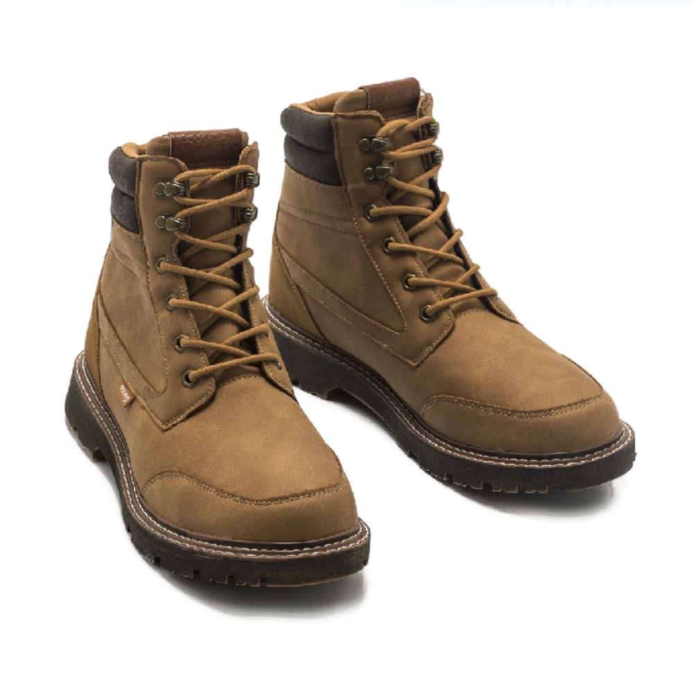 Botín Aldaya Mustang para hombre. De inspiración montañera de color cuero. Piso tipo track y horma ancha. Cierre de cordones tubulares. Nombre de la marca en la lengüeta y en una pequeña etiqueta lateral. Franja marrón al final de la caña. Serán tus nuevas favoritas para completar tus looks casual.