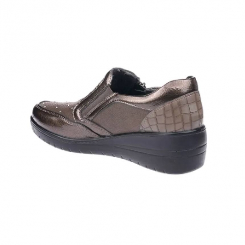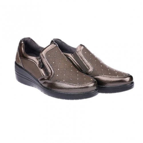 Zapato confort para mujer de la marca Mysoft, modelo 24m515. Realizado mediante paneles de material sintético y textil con detalle de pequeñas piedritas en el empeine. Cierre de cremallera lateral y elástico para facilitar el calce.  Plantilla extraíble de “SoftGel”, con nanopartículas de coloide que garantizan la comodidad desde la primera puesta además del memory foam para amortiguar y suavizar los impactos. Modelo cómodo y actual para cualquier ocasión del día. Altura de la cuña: 5 cm. Un modelo urbano, casual y extremadamente cómodo.