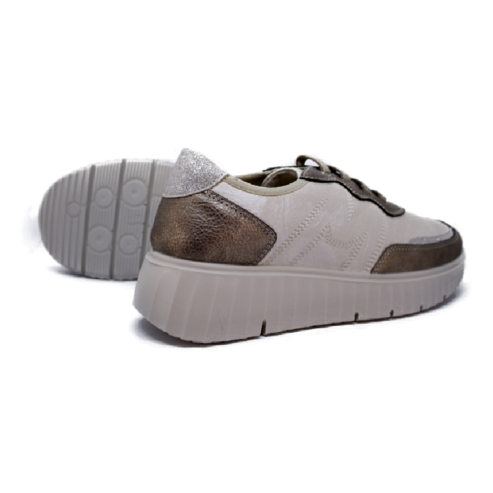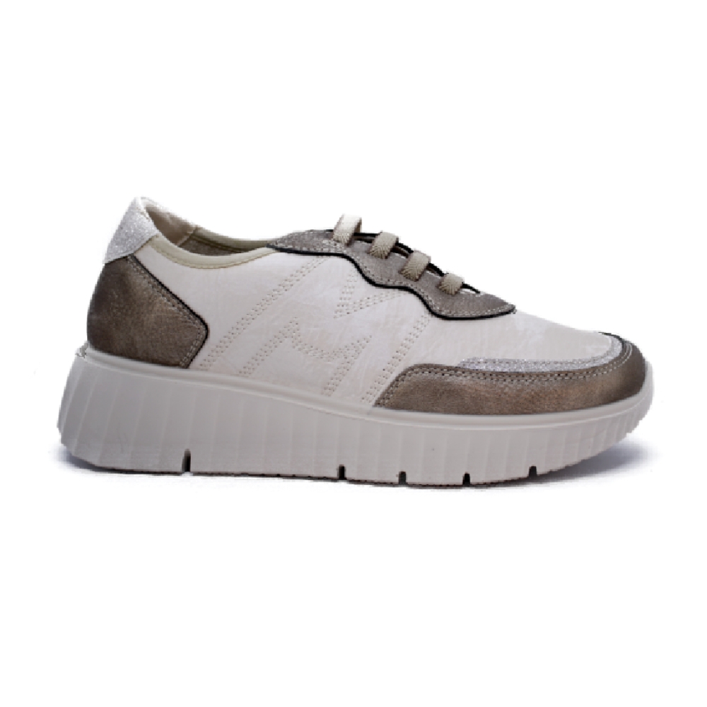 Zapatillas deportivas de mujer. Estas Sneakers de cuña de unos 3,5cm, están confeccionadas en PU / Nylon y tienen un cierre elástico. Plantilla extraible con tecnología SOFTGEL y detalle PU Leather en puntera y lengueta.
