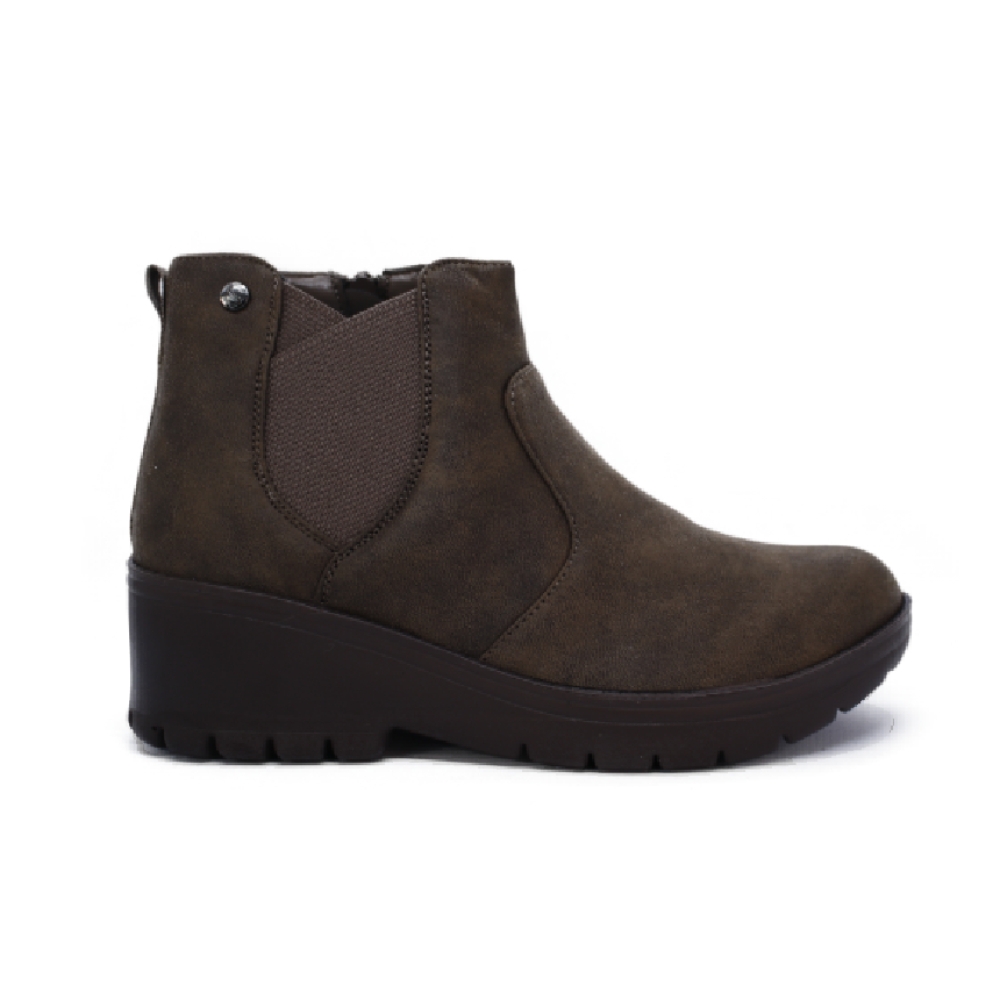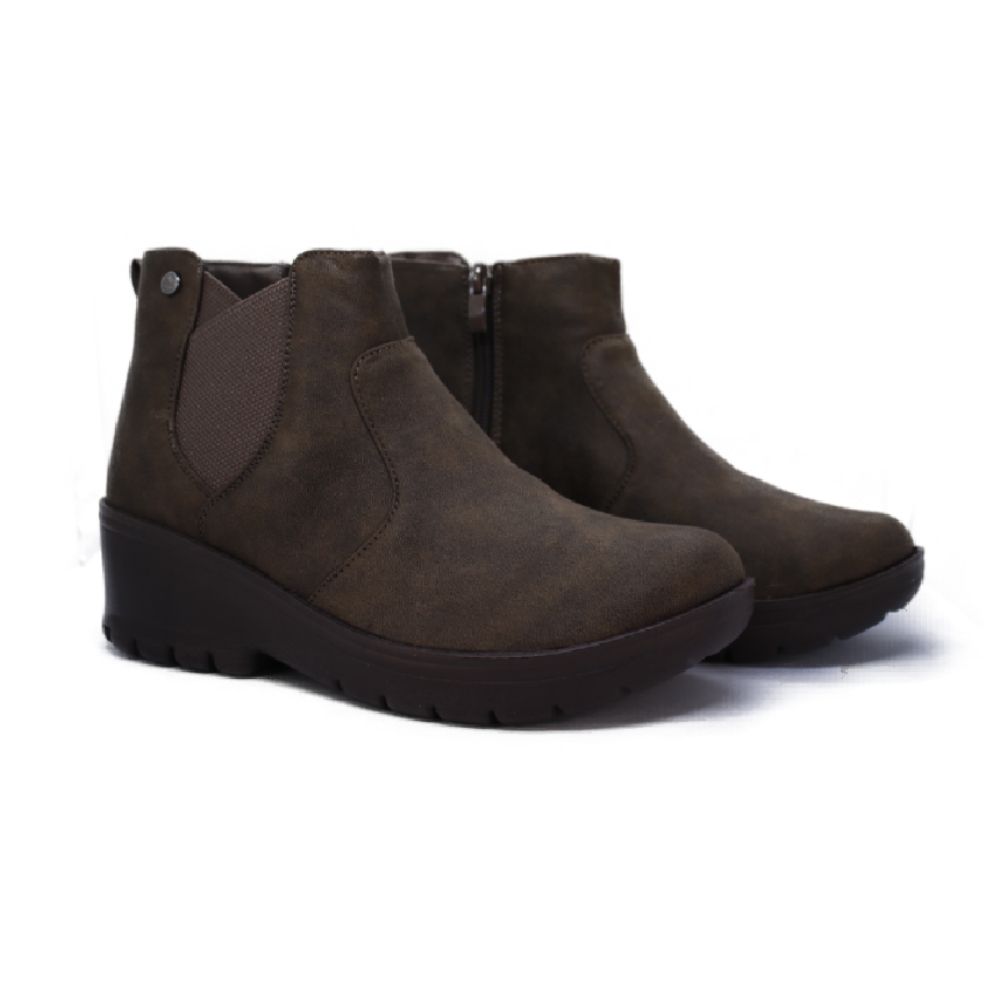 Botín de caña baja muy cómodo y ligero fabricado con materiales de primera calidad en color negro de la marca Mysoft. Plantilla extraible Memoryfoam para amortiguar y suavizar la pisada. Muy ligera y flexible. Cierre con cremallera lateral  con elástico en la parte exterior que facilita la adaptación al tobillo y, una mayor facilidad en el calce.