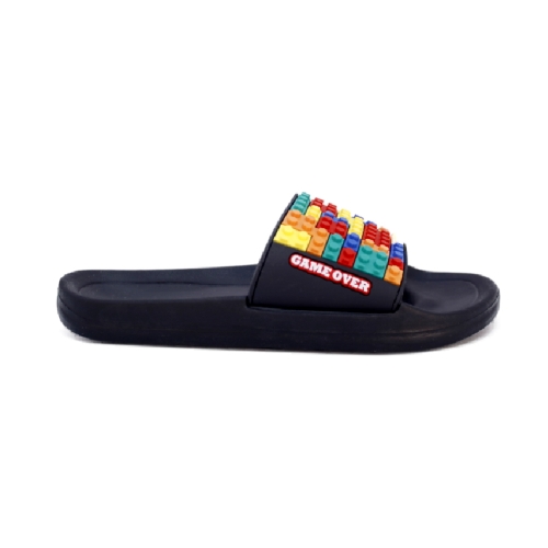 ¡Diversión a cada paso! Estas chanclas de piscina para niño combinan comodidad y diseño original con un toque creativo que encanta a los más pequeños. Su tira presenta un estampado en relieve que simula piezas de bloques de construcción multicolor, aportando un estilo único y lleno de personalidad.