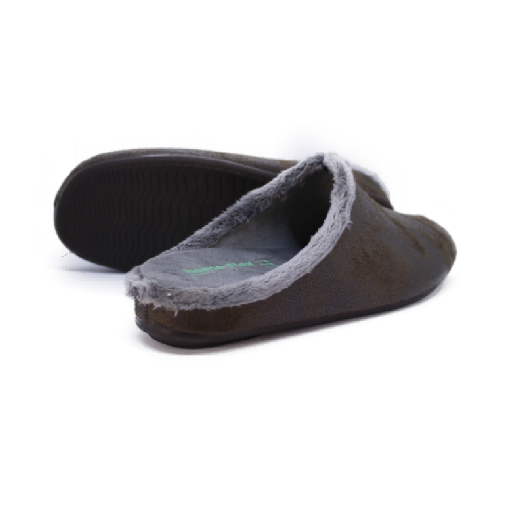 Zapatilla de estar en casa de hombre abierta de talón tipo zueco. Está hecha en suapel, un material cálido y confortable. Tiene un pequeño pico en la zona superior y esto no es solo decorativo, sirve para que entre mejor el empeine. Este modelo tiene una plantilla interior muy blanda que proporciona una pisada muy confortable. Esta plantilla es extraíble, esto quiere decir que se puede quitar y poner otra en su lugar.