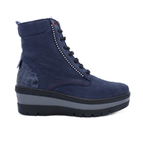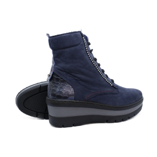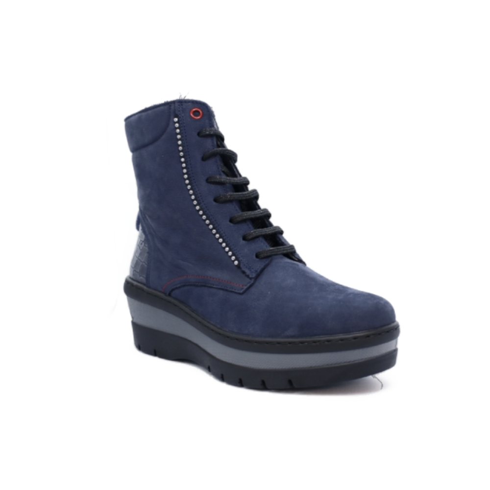 Botín de mujer realizado en piel nobuk. Se ajusta con cordones y tiene cremallera lateral para ajuste perfecto y cómodo. Tiene plataforma de 5 cm confortable y ligera.
