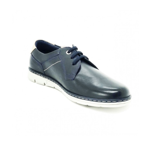 Zapato de cordones en color marino. Un blucher supercómodo, con una piel muy blanda y transpirable que se adapta a casi cualquier pie. Plantilla extraíble y suela de goma antideslizante. Si tus pies no paran en todo el día y necesitas un zapato fresco y blanco, éste es el tuyo.