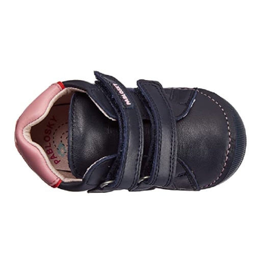 Calzado de la linea StepEasy, Sensación Pies Descalzos, respetuoso con el desarrollo natural de tu bebé. Camina hacia un futuro más sostenible con la exclusiva tecnología Pablosky green System: Material exterior: Piel natural de primera calidad. Material interior: Microfibra textil ecológica inTech, con certificado ambiental STANDARD 100 by OEKO-TEX®. Suela: Goma. Diseñado y fabricado en España.