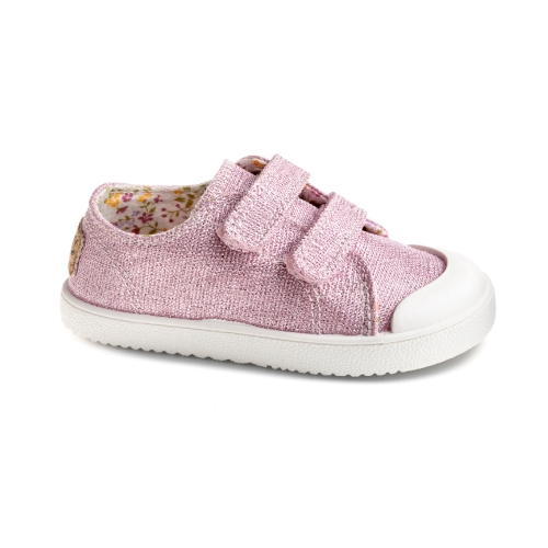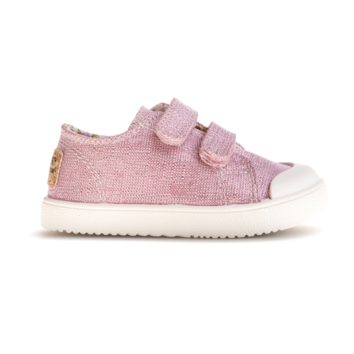 Zapatillas respetuosas de la marca Pablosky en tejido de lino, con un diseño muy bonito con tejido glitter que le da un toque moderno que te encantará nada más verlo y las más peques de la casa querrán llevarlas todos los días.