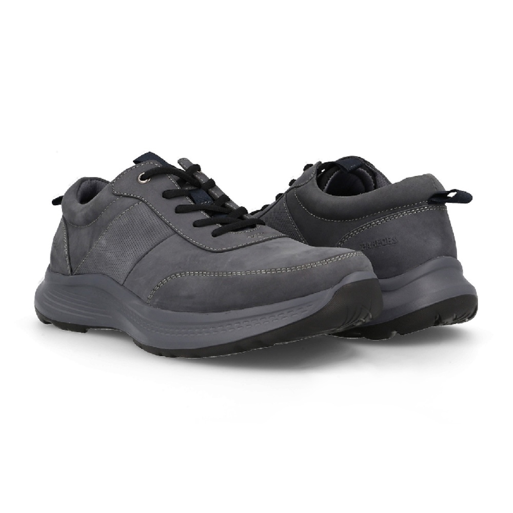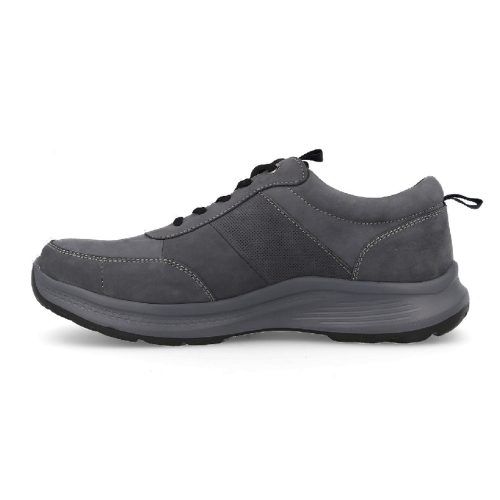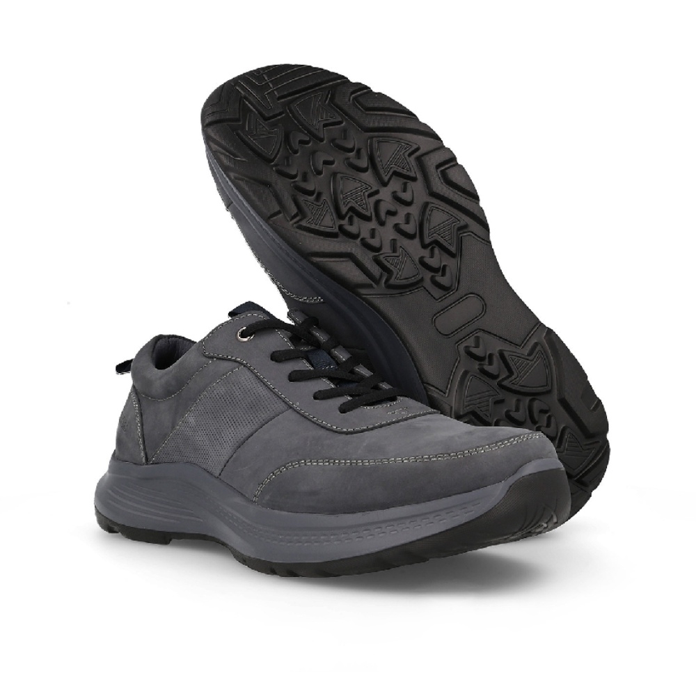 Este es un zapato casual para hombre, confeccionado en piel nobuk de alta calidad en un tono gris oscuro. Su diseño combina elegancia y funcionalidad, perfecto para un uso diario. Presenta las siguientes características destacadas: