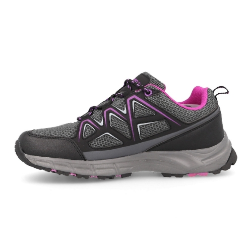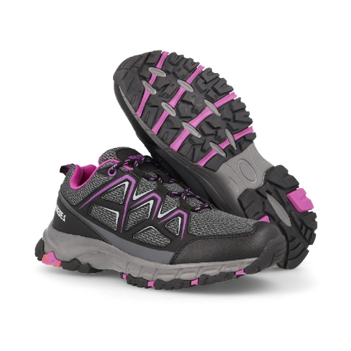 Las zapatillas de trekking para mujer Villaroya en gris son perfectas para disfrutar de tus aventuras al aire libre con la máxima comodidad. Su malla textil permite una transpiración óptima del pie, manteniéndolo fresco y seco en todo momento. La suela antideslizante brinda un agarre excepcional y estabilidad en terrenos diversos. Su diseño básico y versátil las convierte en el calzado ideal para cualquier actividad al aire libre.