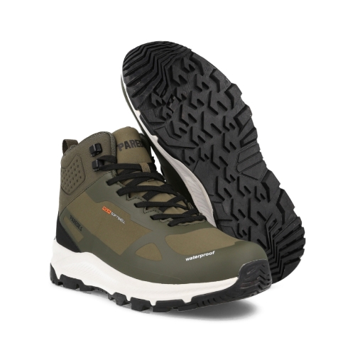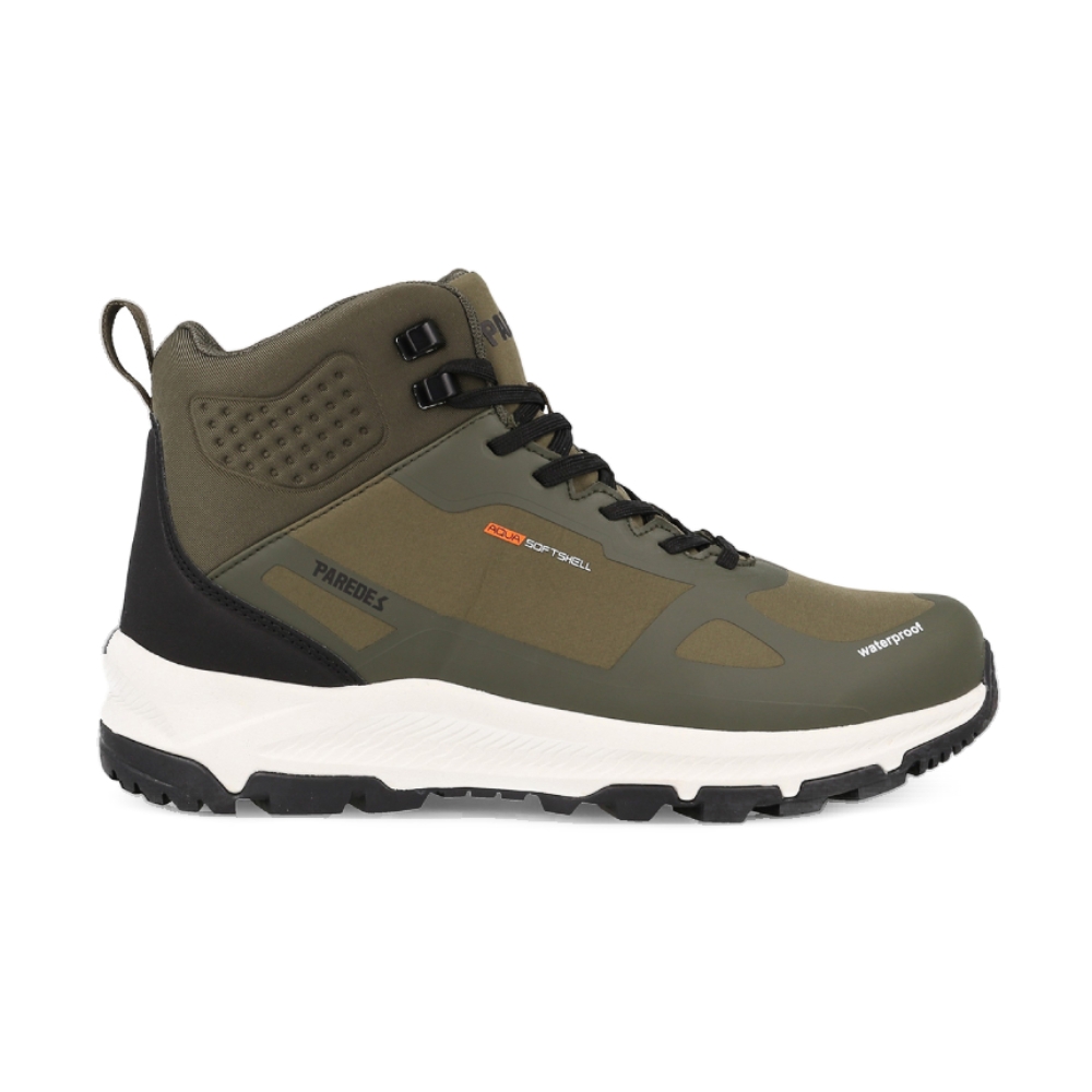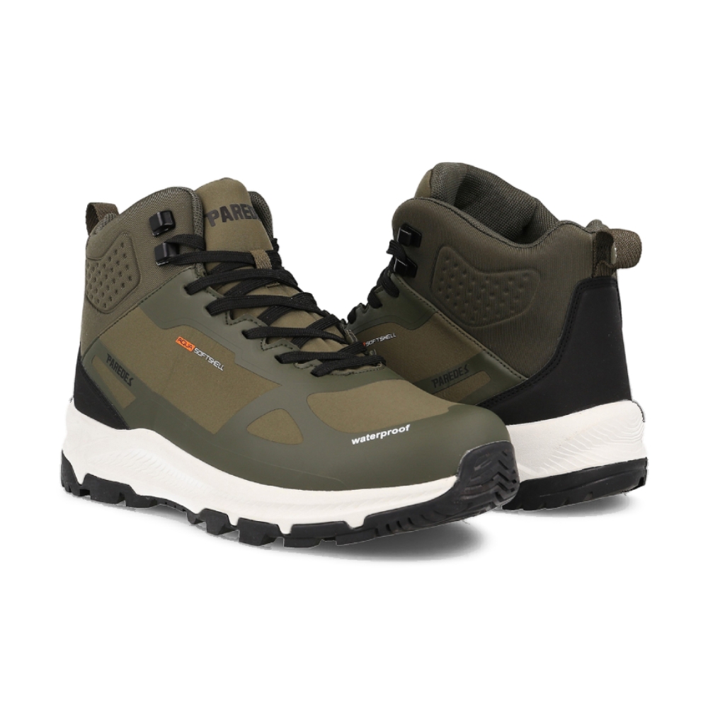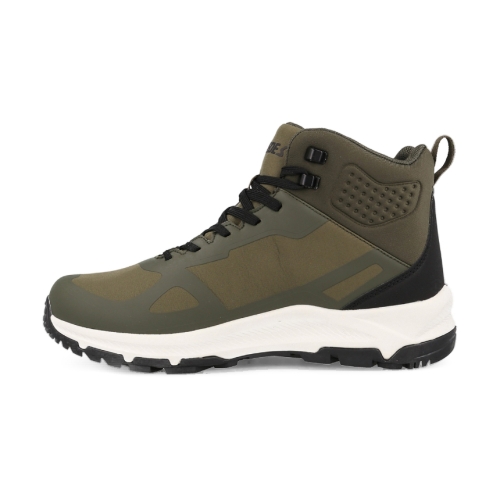 Las botas de trekking Ibieca en color kaki están diseñadas para ofrecer una comodidad y ligereza excepcionales. Fabricadas con corte Softshell y refuerzos PU, estas botas protegen frente al frío, la humedad y la llovizna. La suela de doble densidad mejora la amortiguación y cuenta con un levantamiento en el talón para mayor confort en terrenos montañosos.