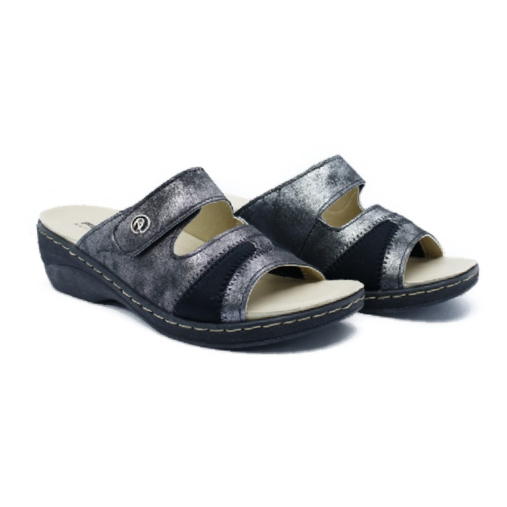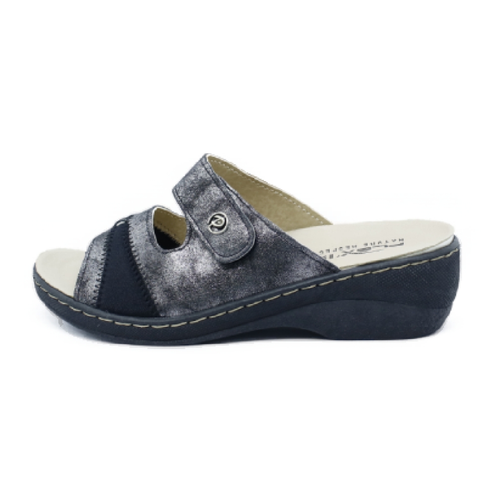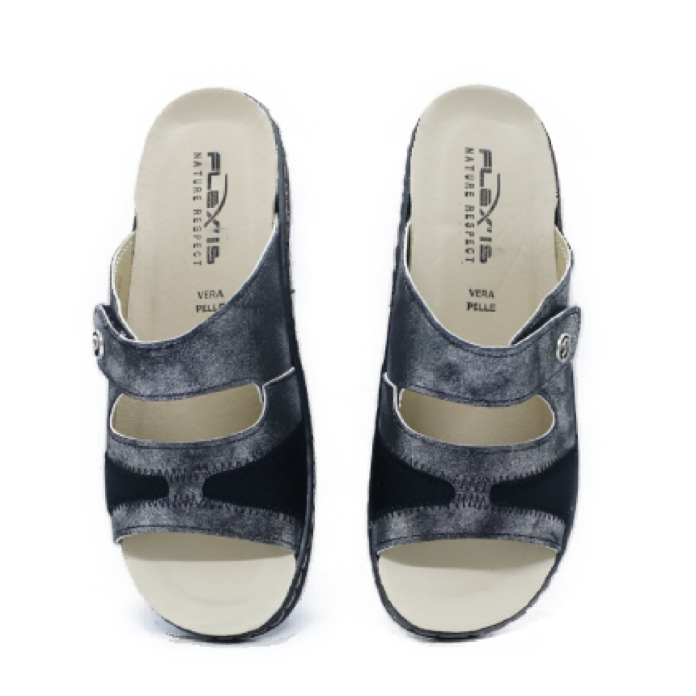 PATRIZIA - Sandalia negro plata tira adhesiva muje
