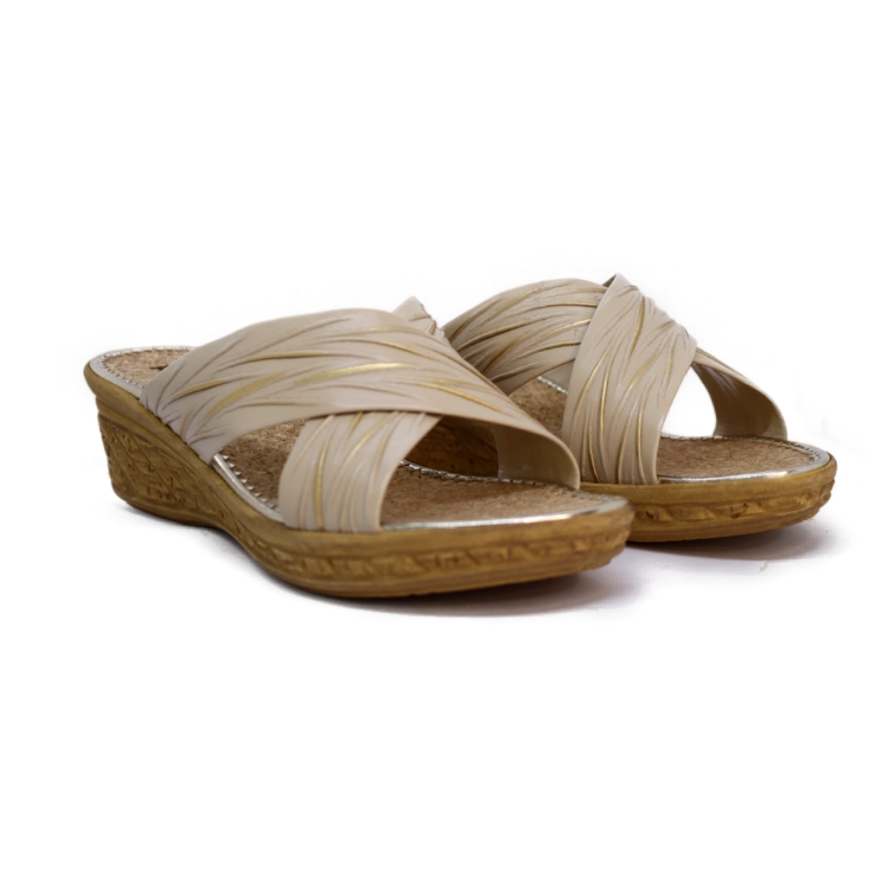 Cuña: Plataforma de altura media con un acabado que imita texturas naturales, proporcionando estabilidad y estilo.