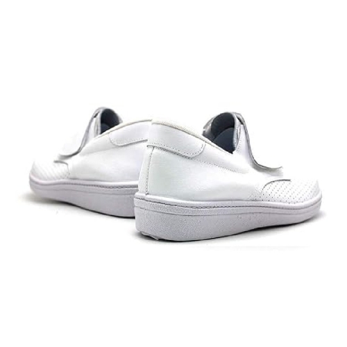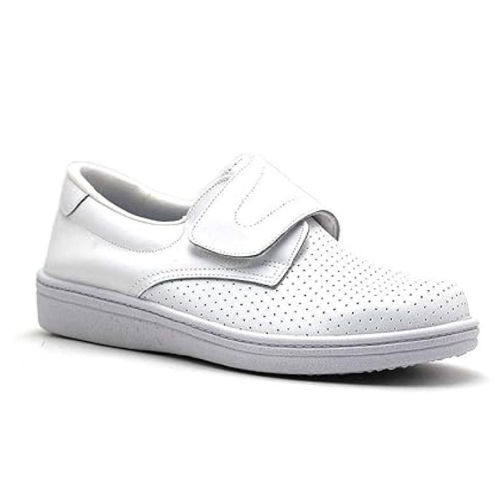 Zapatos sanitarios cerrados de hombre en piel perforada, con cierre de velcro.
