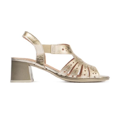 Sandalia de PITILLOS elaborada en piel grabada fantasía de color dorado. Se ajusta y adapta al pie por dos pequeños elásticos en los laterales. La combinarás a la perfección con tus looks de verano.
