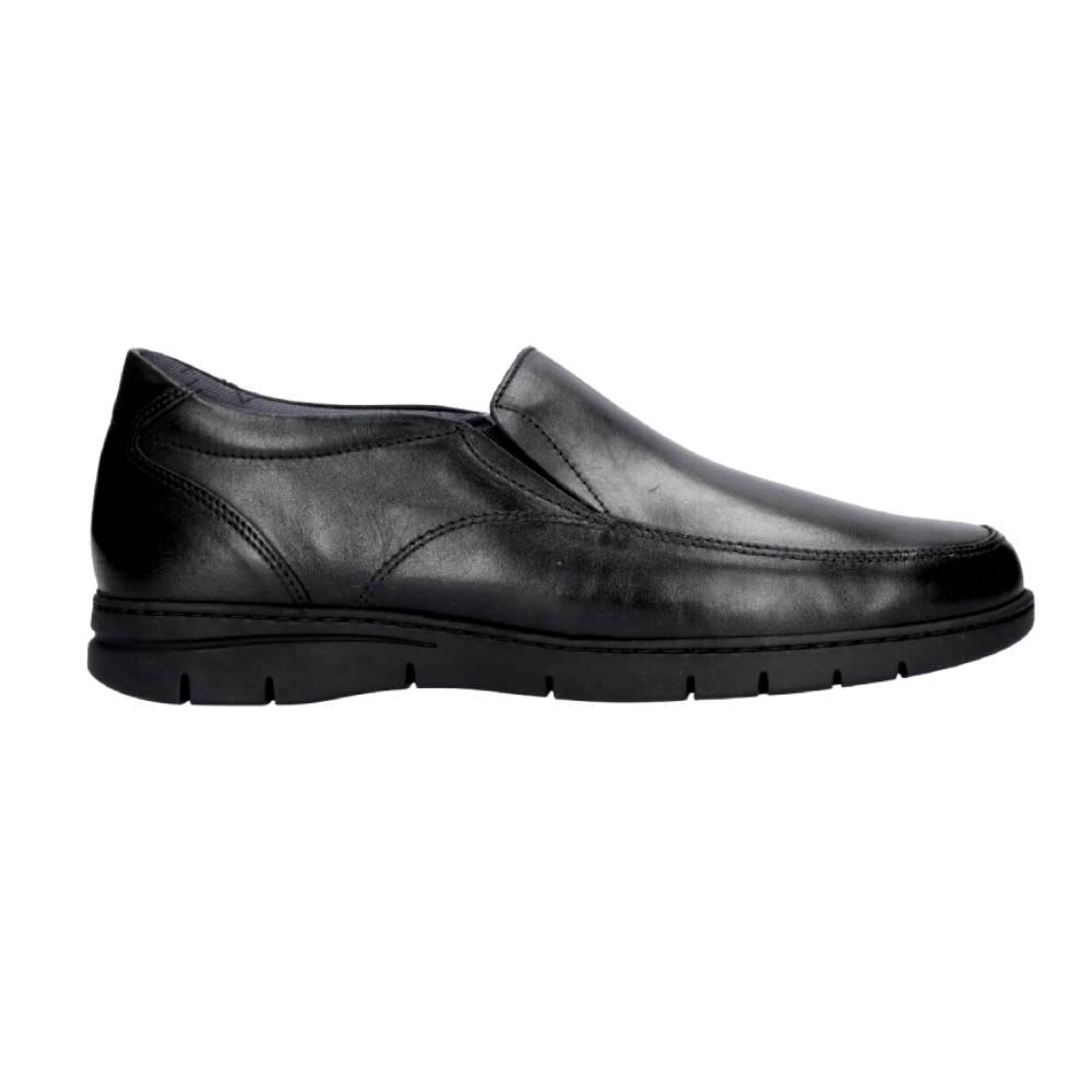 Zapato mocasín de hombre, con elásticos laterales. Modelo cómodo fabricado en piel napa de primera calidad, con suela de goma flexible. Plantilla acolchada y extraíble. Color negro. Ideales para el trabajo y tu día a día. Hecho en España.