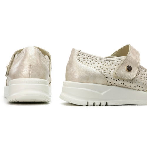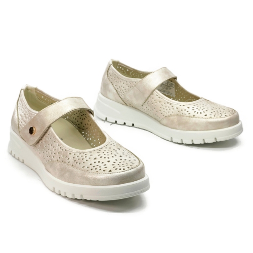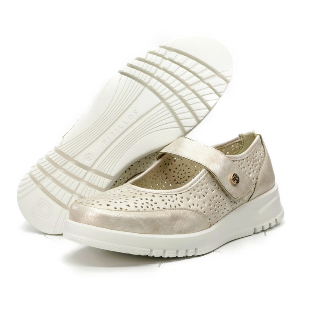 Descubre el equilibrio perfecto entre la sobriedad del tono crema y la sofisticación del acabado oro con el modelo 20300 de Pitillos. Este zapato tipo Mercedes ha sido diseñado para la mujer que busca un calzado funcional, ligero y con un diseño que ilumina cualquier conjunto primaveral o de verano.