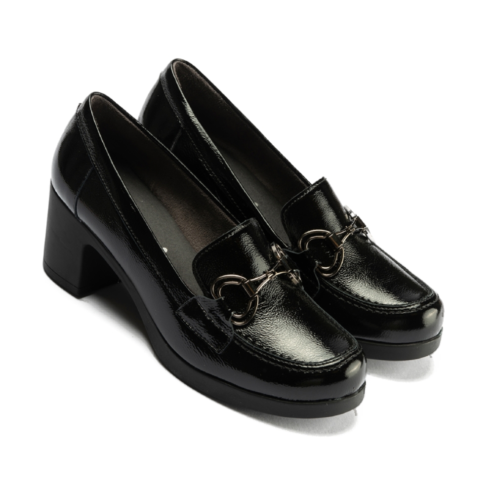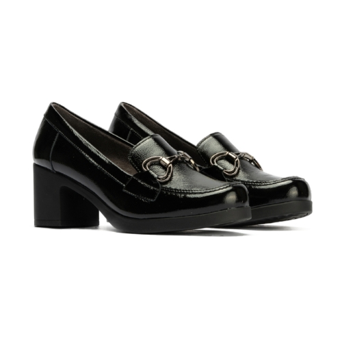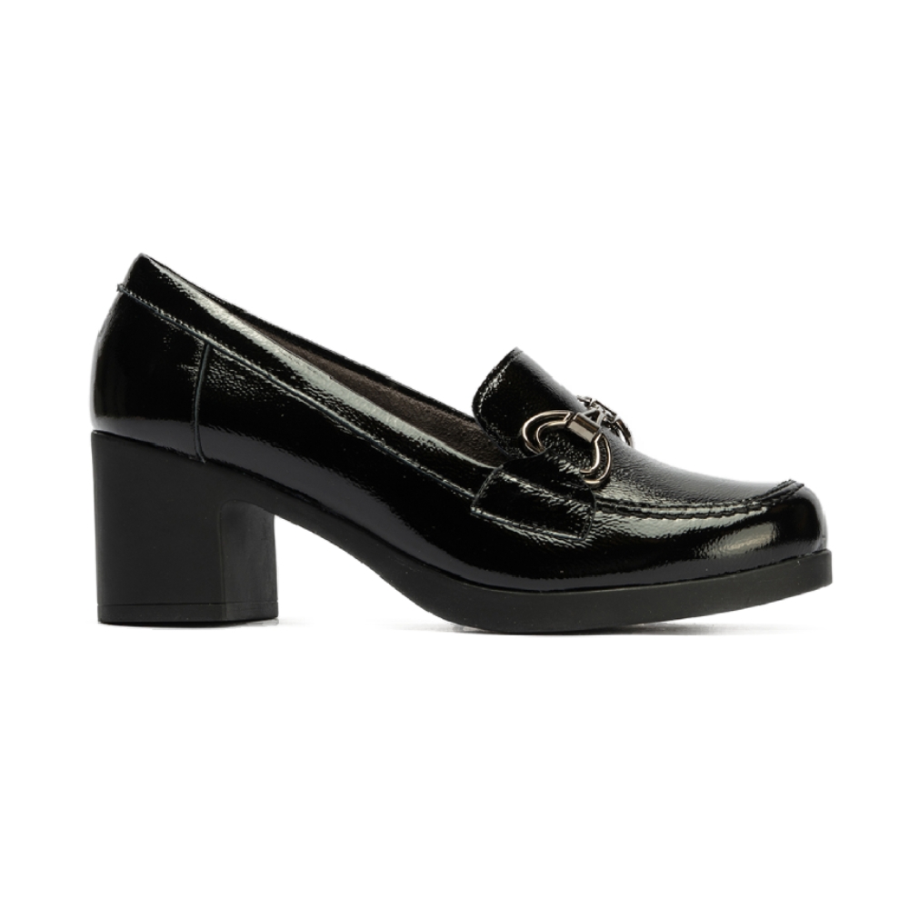 Este zapato de Pitillos combina elegancia y comodidad en un diseño atemporal. Fabricado en piel con acabado charol negro, resulta versátil para looks diarios y ocasiones especiales. El adorno metálico en la pala aporta un detalle moderno y sofisticado que realza su estilo clásico.