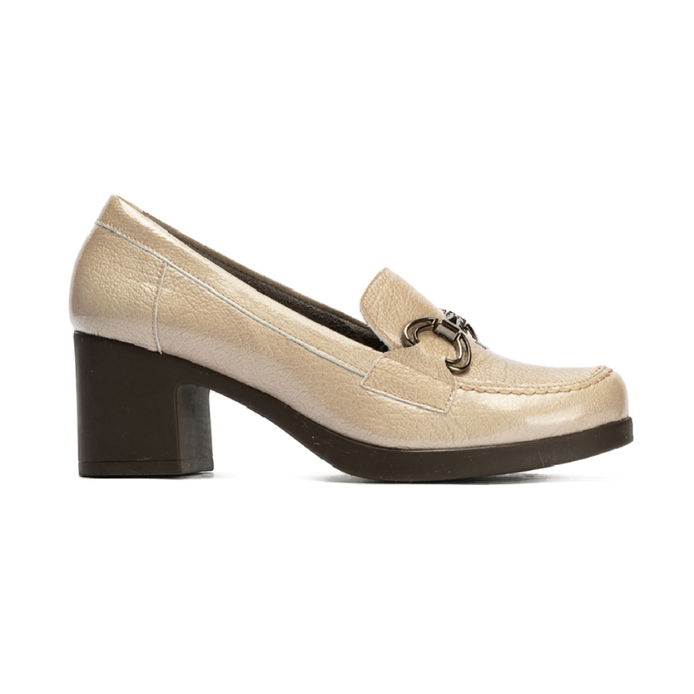 Este zapato de Pitillos combina elegancia y comodidad en un diseño atemporal. Fabricado en piel con acabado charol color piedra o beige, resulta versátil para looks diarios y ocasiones especiales. El adorno metálico en la pala aporta un detalle moderno y sofisticado que realza su estilo clásico.