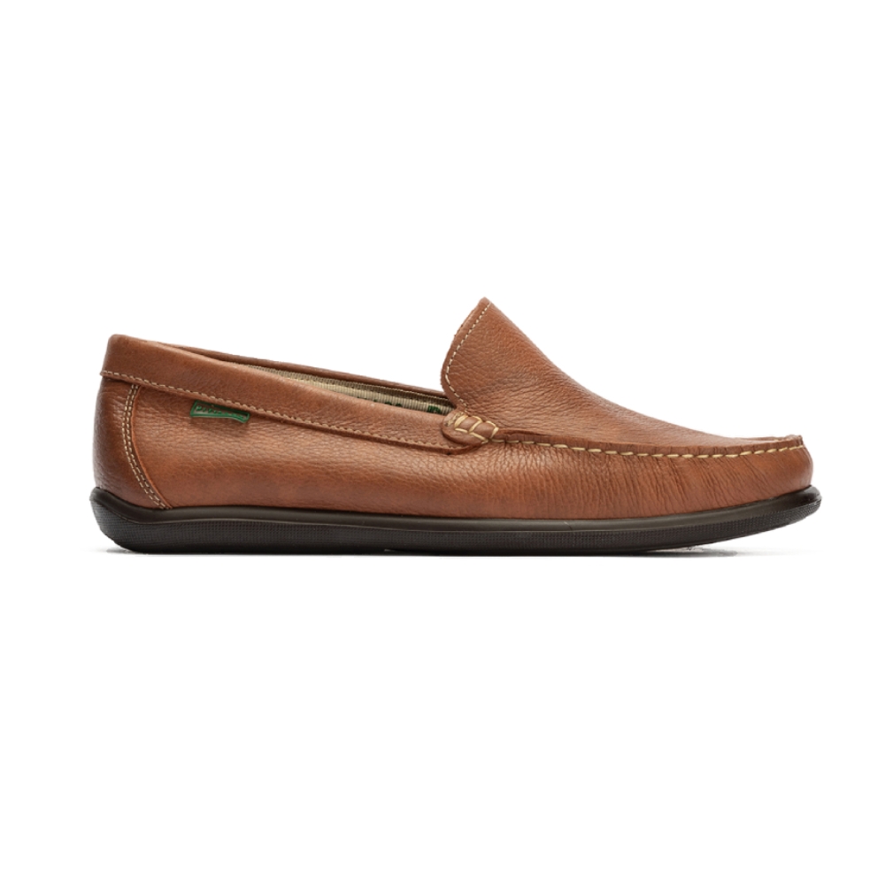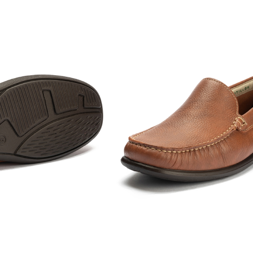 Zapato mocasín de hombre, estilo casual. Modelo cómodo sin cierre. Fabricado en piel de primera calidad, con suela de goma ligera y flexible. Detalle costura visible. Máxima comodidad para tu día a día. Hecho en España.