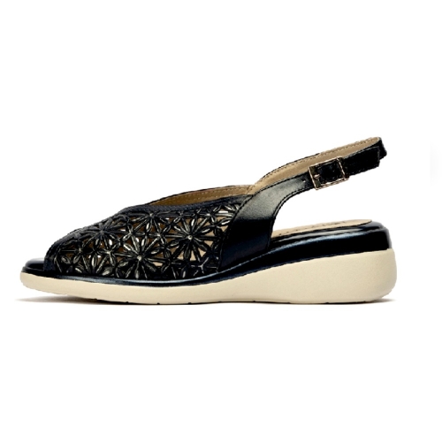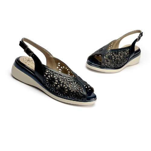La sandalia de cuña en piel troquelada es una excelente opción para quienes buscan comodidad y estilo en un calzado de verano. Fabricada íntegramente en España con materiales de alta calidad, esta sandalia ofrece la combinación perfecta de confort y moda.