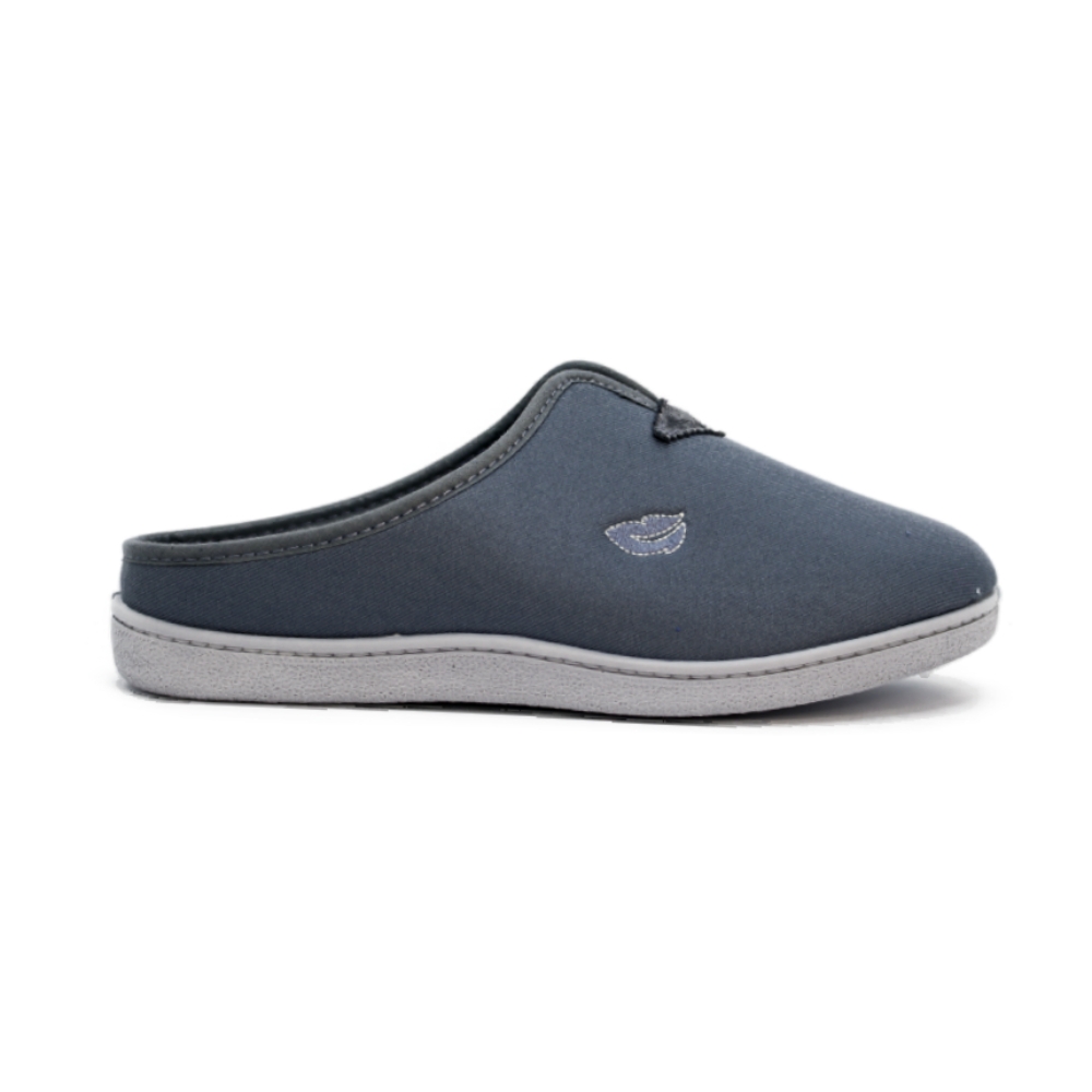 Tejido de Tela Transpirable: Confeccionada en un tejido suave y transpirable de color gris azulado, esta zapatilla garantiza una temperatura óptima del pie, manteniéndolo seco y cómodo durante todo el día.