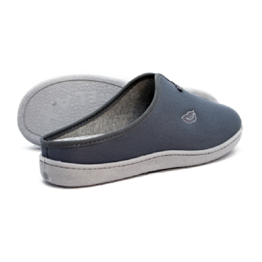 Suela Relax Antideslizante: La suela de caucho ligero incluye el grabado "RELAX", diseñado para ofrecer flexibilidad y un agarre seguro en diferentes superficies domésticas.