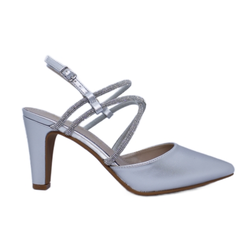 Zapato tacón medio mujer  para mujer en color nude, con cierre de hebilla, altura del tacón 8 cm, zapato de salón destalonado para vestir,. Incorpora tiras gliter a tono que consiguen ajustar perfectamente el zapato. Material exterior de antelina forro interior de piel y plantilla de piel acolchada. Plataforma interna de 1 cm.