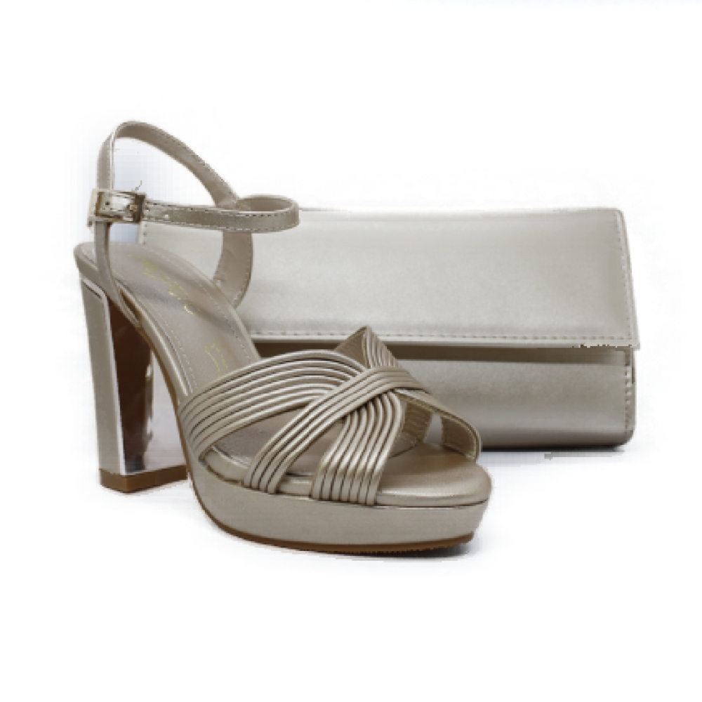 Sandalia fiesta de mujer, con ajuste al tobillo y cierre de hebilla. Modelo cómodo, fabricado en piel, con suela de goma. Tacón ancho de 10 cm. de altura.Plataforma delantera de 2 cms aproximadamente.  Modelo metalizado, ideal para bodas, bautizos, comuniones y demás celebraciones.