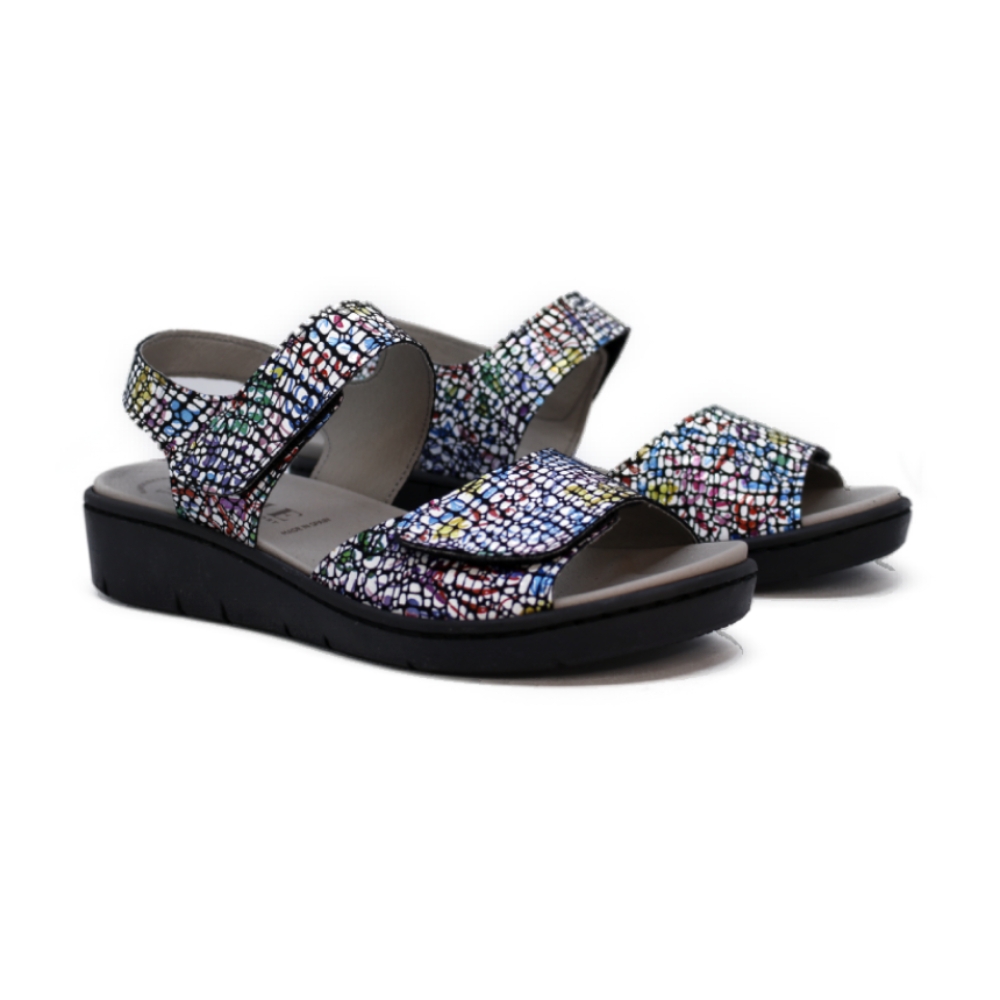 Diseño en Piel Serigrafiada: Fabricadas en piel de primera calidad con un original y alegre estampado multicolor. Su acabado serigrafiado aporta un toque moderno y vital a cualquier look veraniego.